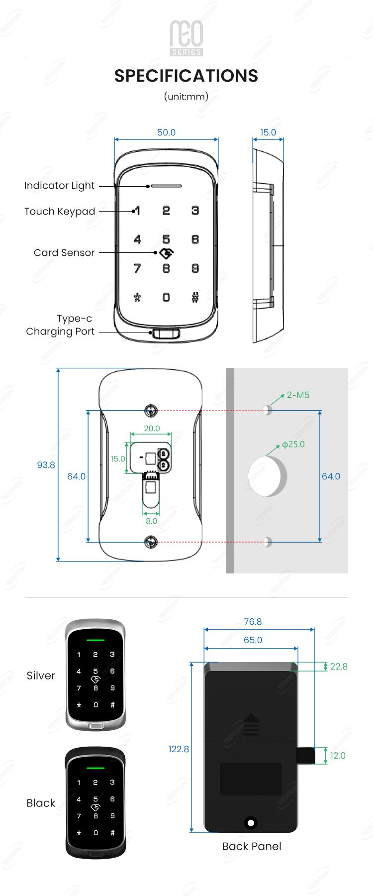 L93.8×W50mm (front) / L122.8×W76.8mm (back)